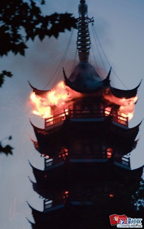 發(fā)生火災的藥師塔為1987年興建,1989年建成,塔高約44米,是雞鳴寺的標志性建筑。該塔主體為鋼筋混凝土結構,外層用木結構裝修。